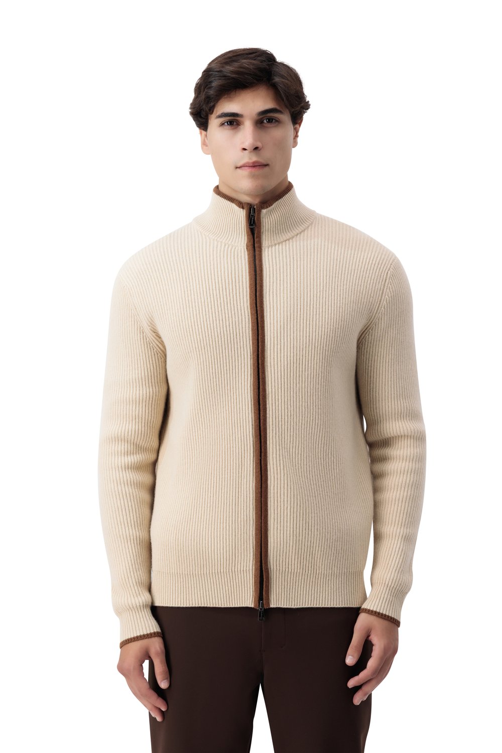 بلوفر صوف ميرينو بسحاب كامل - كريمي بيج