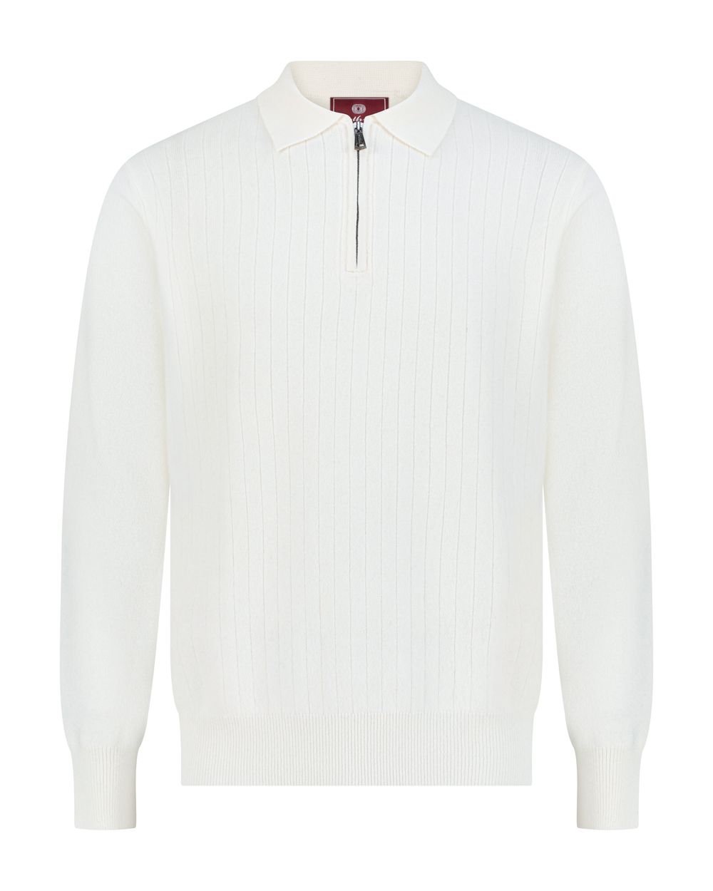 The Half zip rib merino wool sweater cream white is crafted for those who appreciate quality and comfort.