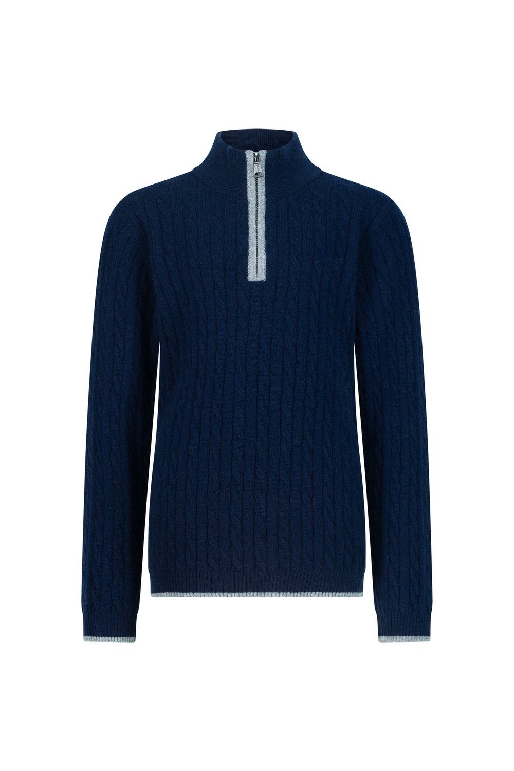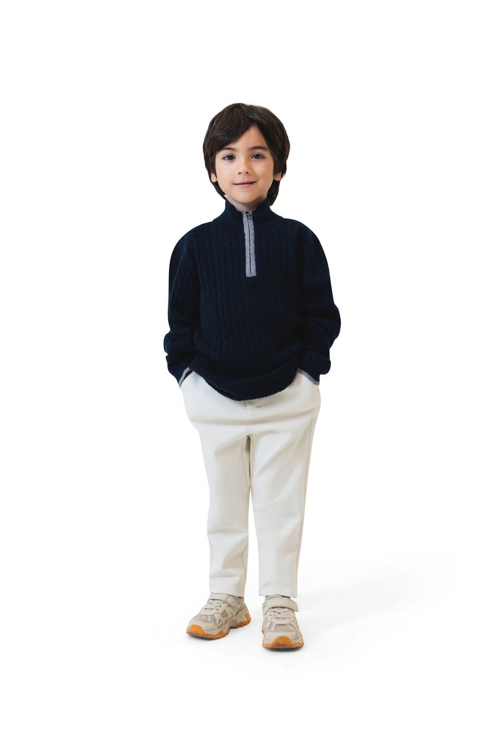 The Kid's cashmere half zip cable cosmos slate keeps little ones stylish and comfortable.