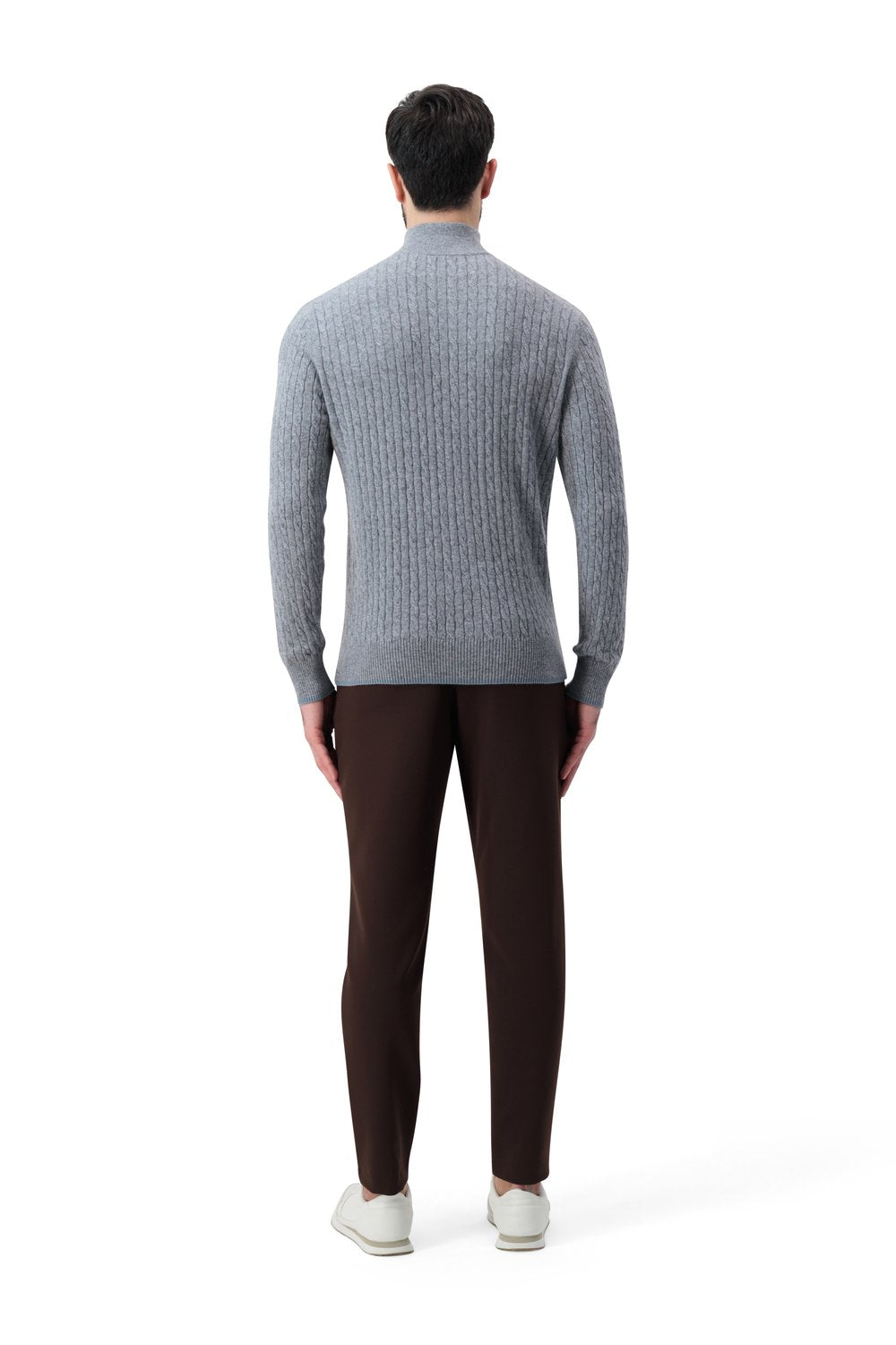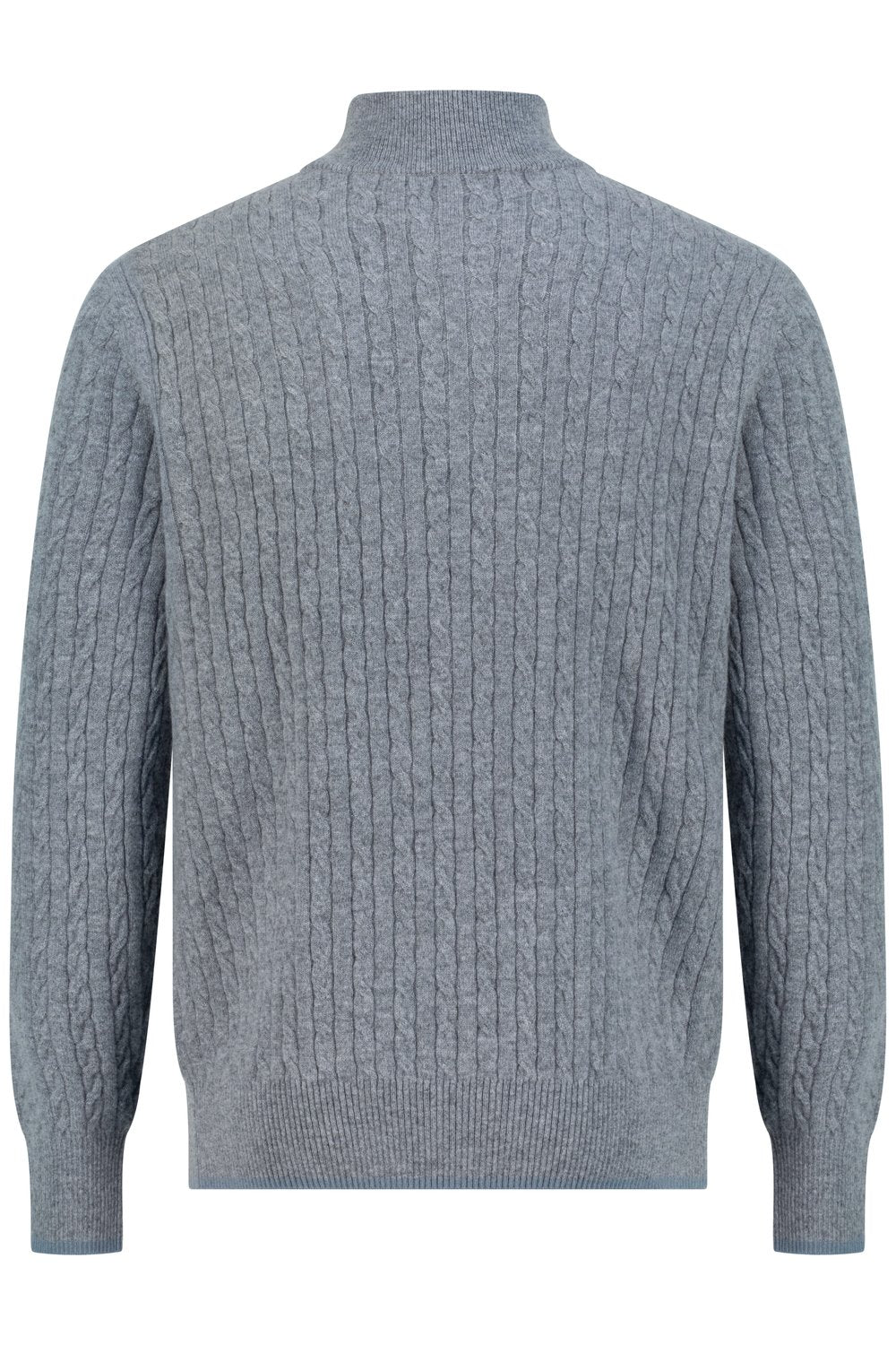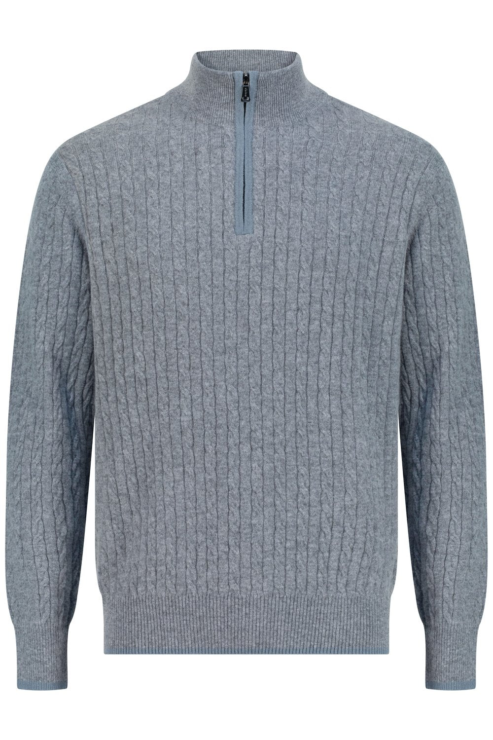 The Cashmere half zip cable sweater slate storm is crafted for those who appreciate quality and comfort.