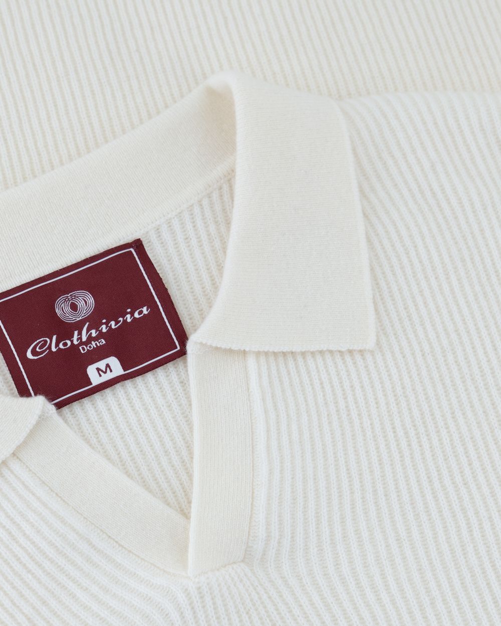 Open collar rib merino wool sweater cream white