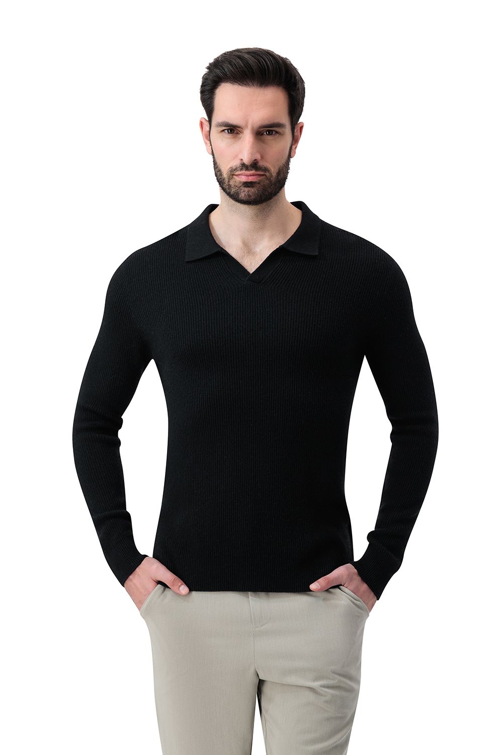 The Open collar rib merino wool sweater gravity is crafted for those who appreciate quality and comfort.